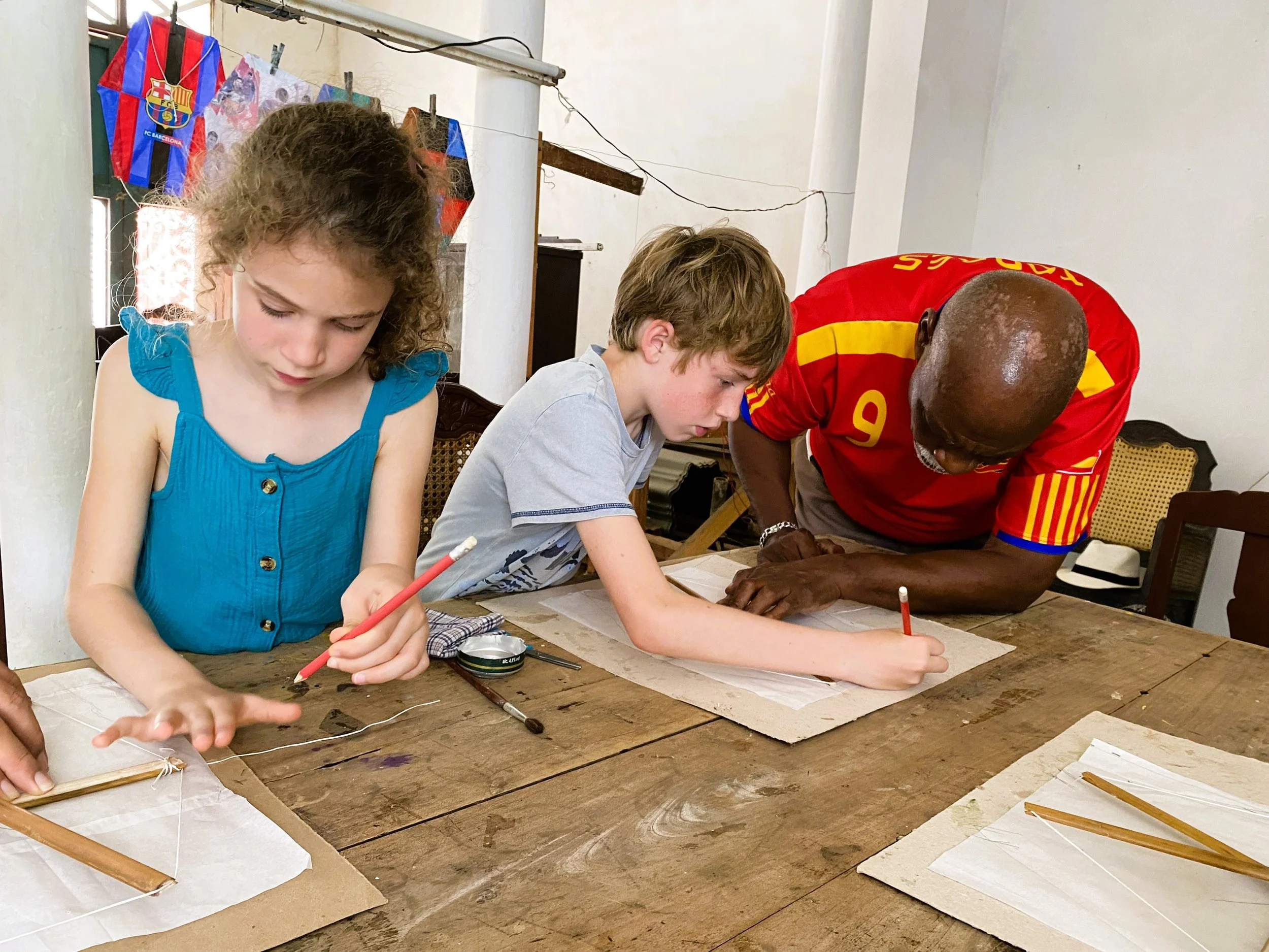 Apprendre à bricoler, faire un cerf-volant et puis le faire voler dans le ciel de Cuba. Les enfants adorent.