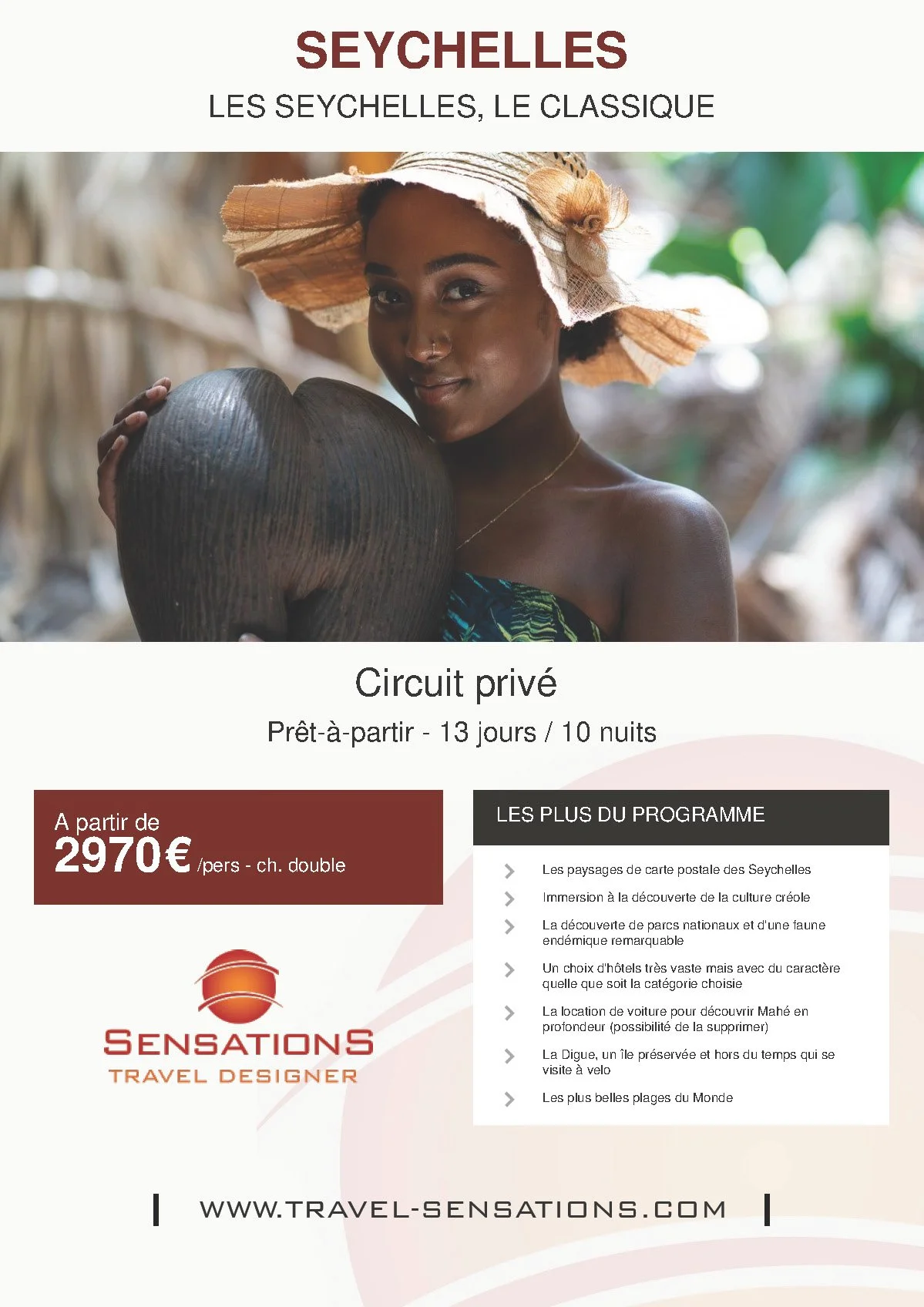 Les Seychelles sont un petit coin de paradis de nature vierge, de plages paradisiaques et où la culture créole est encore très vivace et authentique ! 115 îles au large de l'Afrique de l'Est, en plein océan indien, connues pour leurs plages, les récifs coralliens, mais aussi les forêts tropicales et les 20 parcs nationaux terrestres et marins où l'on voit des myriades d'oiseaux (jusqu'à 7 millions !), des tortues marines et quantités d'espèces végétales et animales uniques au monde ! Les 99.000 habitants de l'archipel nature parlent presque tous le créole et le français est largement répandu ! Bien plus qu'un simple séjour balnéaire, Sensations vous propose une approche mêlant farniente et découvertes ! Notre collègue Laurent rentre tout juste de cette destination mythique, voici ses impressions et ses coups de cœur !